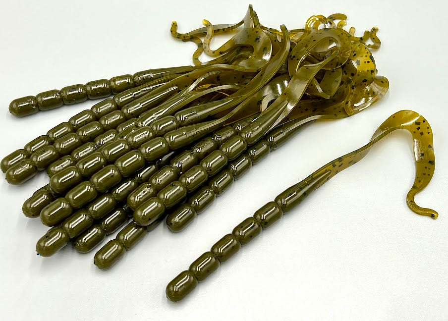 Introducing the "Barrel Worm" by Crabby Abby Bait Company, the ultimate lure for bass fishing enthusiasts! Handcrafted with precision, this 7 1/2-inch worm boasts an irresistible design that mimics natural prey, enticing even the most cautious bass. Its barrel shape delivers unparalleled action in the water, guaranteeing a lifelike movement that fish can't resist. Whether you're a seasoned angler or a weekend warrior, the Barrel Worm is your go-to choice for reeling in the big ones. Experience the difference with Crabby Abby's finest creation and elevate your fishing game today!