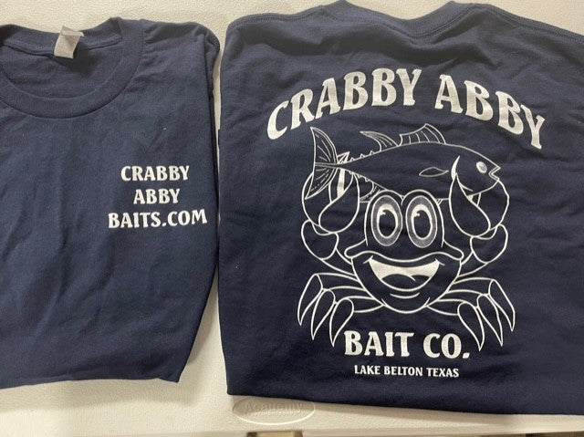 High quality Glidan Dry blend t-shirts, with our logo on the back, and crabbyabbybaits.com on the front. You will look like fashionista in one of our tee's!