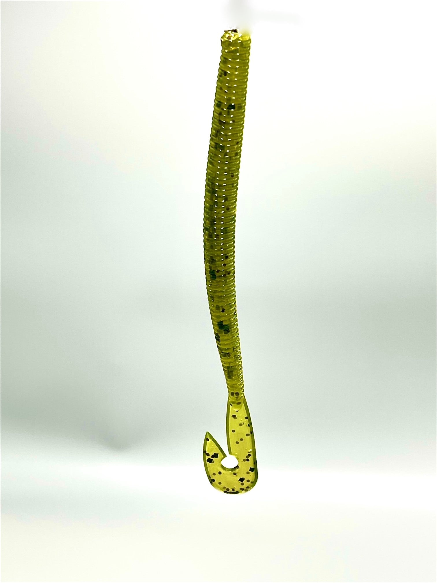 Crabby Abby’s 5 ¾” Turbo worm delivers the perfect combo of hard-pounding vibration, and unique design. The Turbo worm offers lethal attraction that big bass will absolutely destroy. Molded with a Crabby Abby’s lively J O tail, the Turbo worm provides hard-fluttering attraction, whether it is Texas-rigged, Carolina-rigged, or fished on a shaky head.